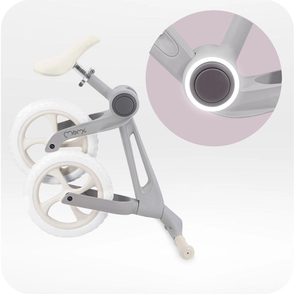 MoMi Noru porta i primi passi sulla bici a un nuovo livello. L’innovativo telaio pieghevole con pulsante semplifica trasporto e stoccaggio: dall’auto a casa senza pensieri. La struttura leggera in nylon resistente pesa solo 3 kg, così anche i genitori possono trasportarla facilmente con una mano.