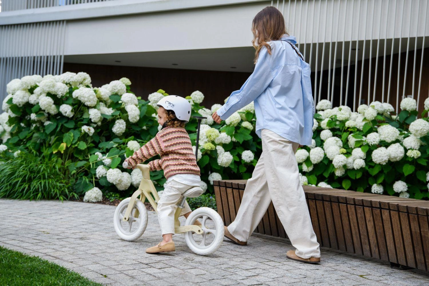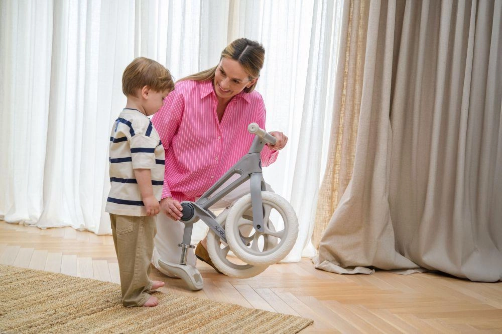 MoMi NORU è una bici senza pedali intelligente progettata per il comfort di bambini e genitori. La chiusura a un solo pulsante permette una preparazione rapida al viaggio e il minimo ingombro in casa. Il leggero telaio in nylon si trasporta con facilità, mentre i pneumatici EVA esenti da manutenzione garantiscono una marcia scorrevole senza rischio di forature.