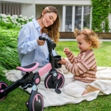 Veicolo per bambini universale 3 in 1 che cresce con il tuo bambino: draisina, triciclo con pedali e bicicletta di equilibrio in uno. Dispone di manubrio e telaio auto-ripieghevoli per una facile sistemazione, sellino regolabile con 2 altezze, conversione senza attrezzi e pratico portabottiglia e supporto per pedali. Struttura in alluminio leggera, ruote in PU silenziose e portata fino a 25 kg.