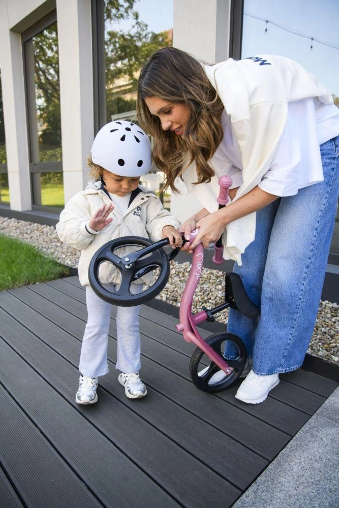 Il comfort è garantito dalle ruote in gomma termoplastica (TPR), che assorbono meglio le vibrazioni e offrono buona aderenza. L’altezza della sella e del manubrio si regola rapidamente e senza attrezzi, così la bici cresce insieme al bambino. L’assenza del blocco dello sterzo favorisce l’agilità e, in caso di inciampo, permette al manubrio di ripiegarsi aumentando la sicurezza.