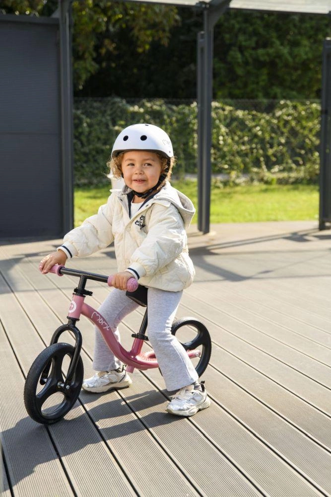 I genitori apprezzeranno la rapida regolazione in altezza di sella e manubrio senza l’uso di attrezzi. L’assenza del blocco dello sterzo aumenta la sicurezza: in caso di caduta il manubrio si ripiega riducendo il rischio di infortuni, e la bici è più maneggevole. Le manopole antiscivolo e le pratiche pedane poggiapiedi favoriscono una postura corretta e la sicurezza del bambino.