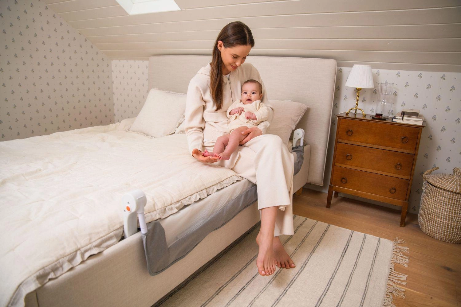 La sponda si installa facilmente in pochi minuti. Puoi scegliere tra il montaggio sotto il materasso con cinghie di fissaggio oppure avvitandola alla struttura del letto.
