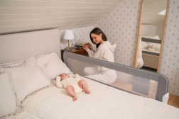 L’installazione è semplice e flessibile: sotto il materasso con fissaggio a cinghie oppure avvitandola saldamente alla struttura del letto. La pratica tasca laterale contiene gli oggetti essenziali da tenere sempre a portata di mano. Inoltre, la sponda è testata da laboratori internazionali per soddisfare elevati standard di qualità e sicurezza.