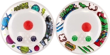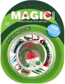 Il diametro di 8 cm lo rende un passatempo tascabile ideale – in auto, in sala d’attesa e in gita. Il gioco è realizzato in plastica leggera ed è fornito su cartoncino da 12 × 16 cm in vari motivi e temi (ad es. sportivi o con dinosauri) che attraggono i bambini.