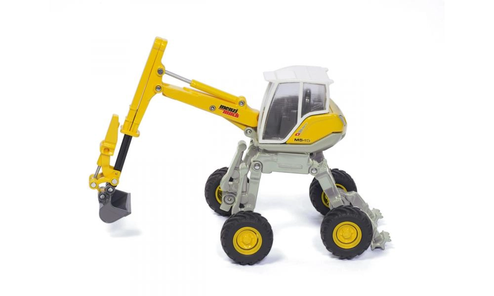 Modello dettagliato dell'escavatore deambulatorio MENZI MUCK di Siku in scala 1:50 con funzioni realistiche, gambe “a polipo” articolate e mobili, braccio telescopico e sovrastruttura girevole a 360°. La costruzione in metallo con dettagli in plastica garantisce robustezza, mentre gli pneumatici in gomma assicurano movimenti fluidi su varie superfici. Ideale per piccoli costruttori dai 3 anni e per collezionisti.