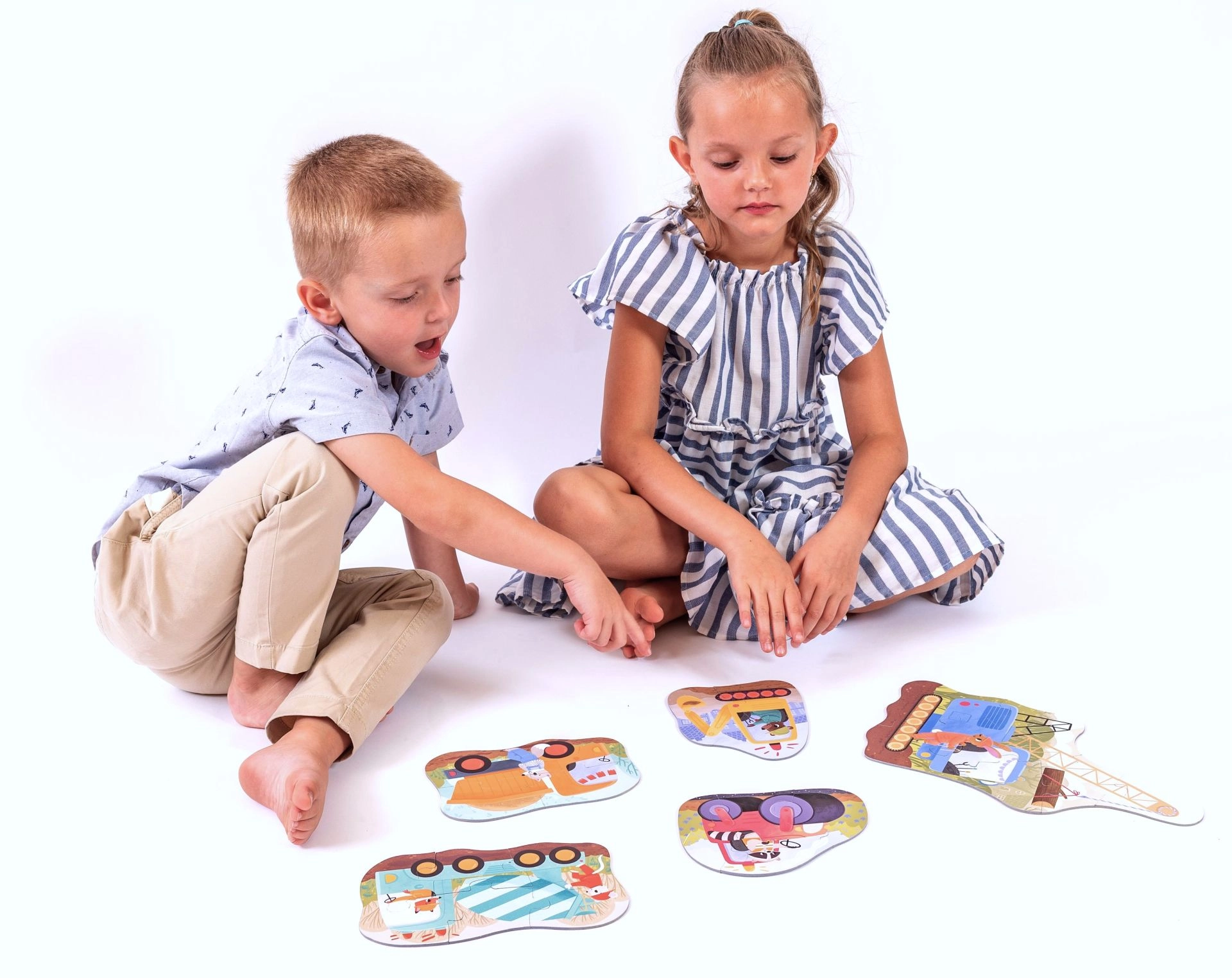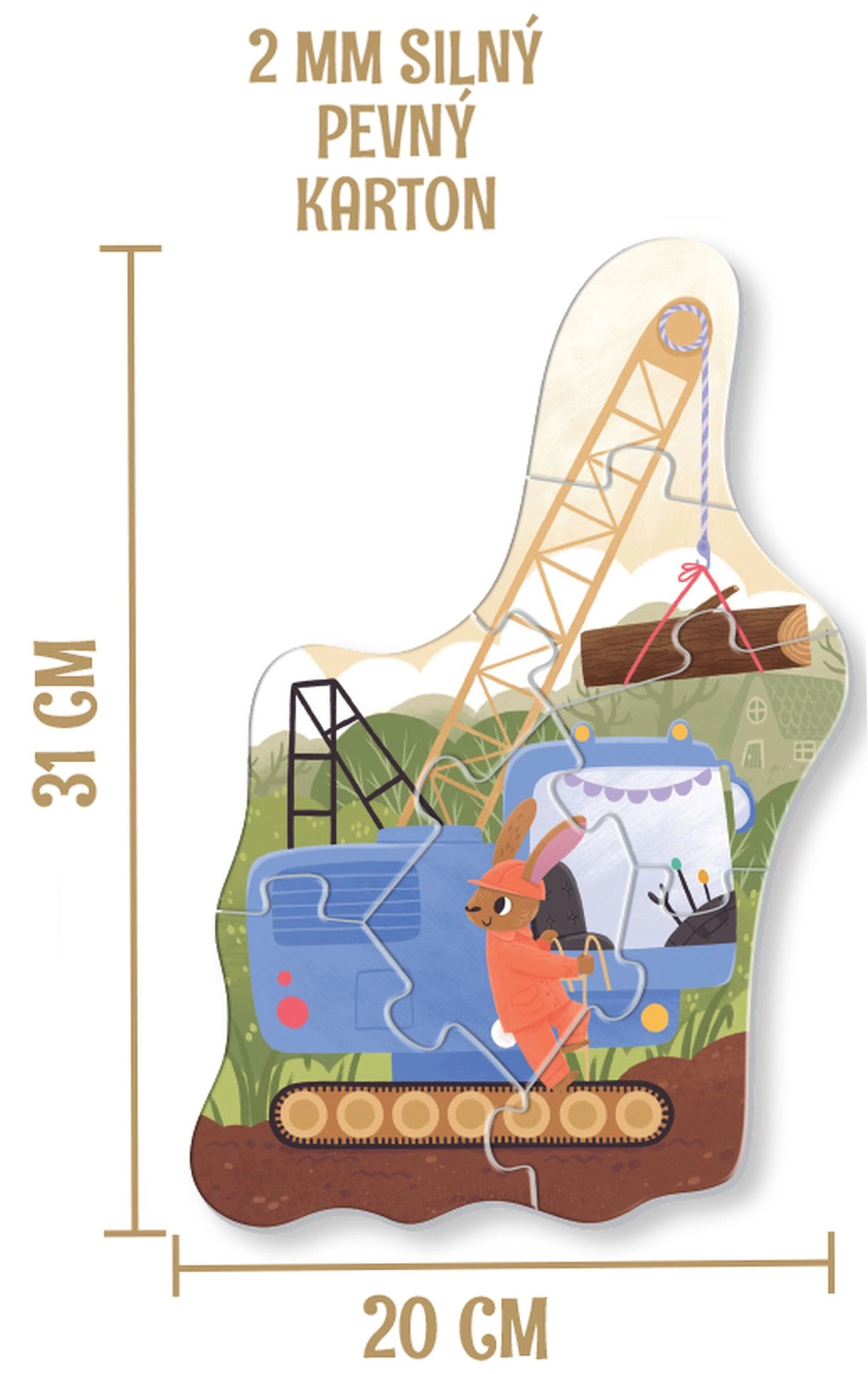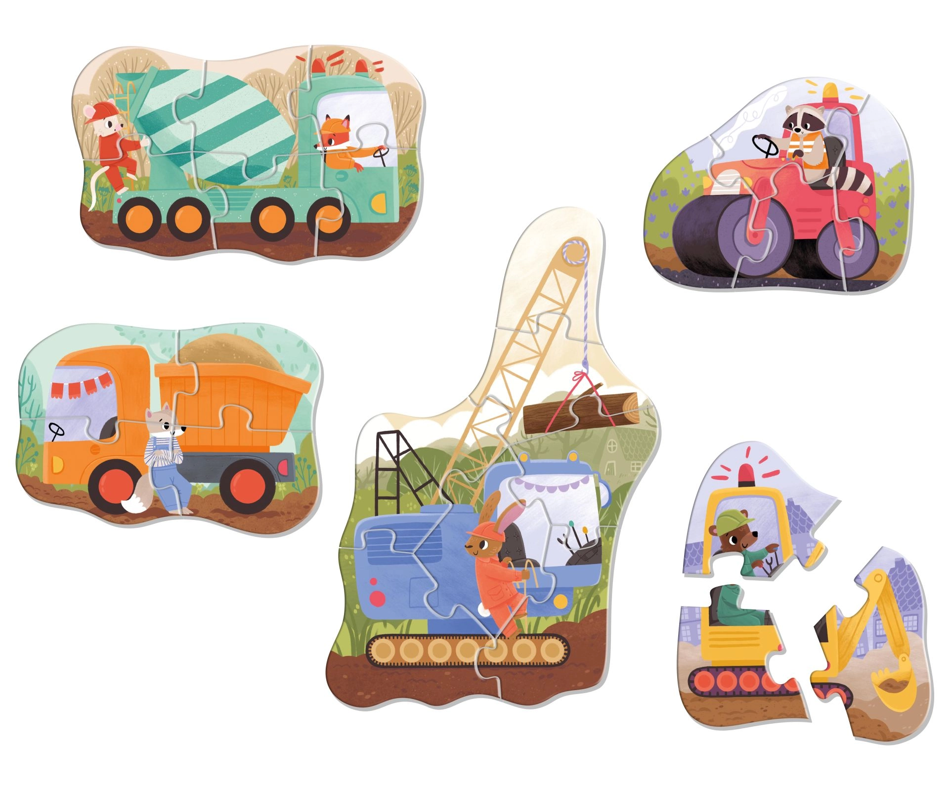 Scopri il divertimento dei puzzle con macchine edili: da semplici puzzle a 2 pezzi fino a quelli più grandi a 7 pezzi, formato 31 × 20 cm. Questo set è ideale per i piccoli fan di escavatori, betoniere e gru. I pezzi sono robusti, spessi 2 mm e facili da afferrare, così i bambini manipolano meglio e provano più presto la gioia del successo.