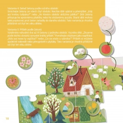 Primavera, estate, autunno e inverno in scene riccamente illustrate. I bambini riconoscono i cambiamenti in natura e le attività tipiche durante l’anno.