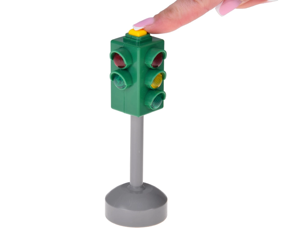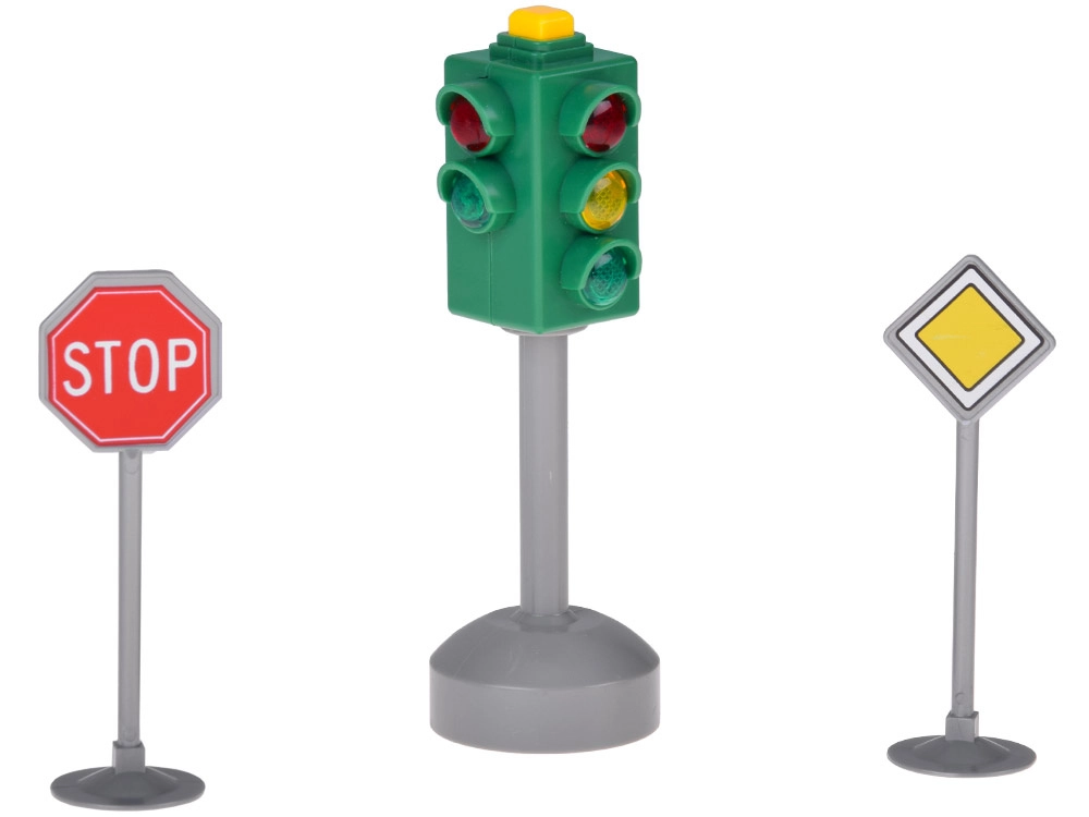 Questo set di semaforo realistico porta ordine e divertimento nel gioco dei bambini. Il semaforo ha luci rossa, gialla e verde e effetti sonori di accompagnamento, grazie ai quali i bambini capiscono quando è il momento giusto di fermarsi, attendere e partire. Nella confezione sono inclusi anche 2 segnali stradali – STOP e Dare precedenza, che arricchiscono gli scenari di gioco e promuovono abitudini sicure.