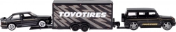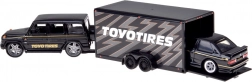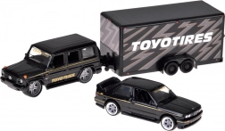 Scopri una coppia senza tempo che conquisterà collezionisti e appassionati: il robusto MERCEDES‑BENZ G (1988) e la leggendaria BMW M3 E30 in una uniforme livrea nera. La scocca in metallo con linee precise, le ruote in gomma e le stampe pulite dei dettagli donano ai modelli un aspetto autentico. Il rimorchio funzionale con rampa d’accesso consente di “trasportare” in sicurezza la BMW dietro al MERCEDES, aumentando la giocabilità e l’attrattiva in vetrina.