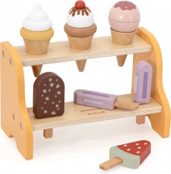 Il supporto stabile mantiene coni e ghiaccioli al loro posto, favorendo ordine e chiarezza visiva durante il gioco del negozio.