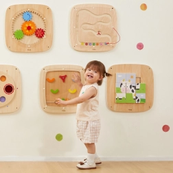 Grazie alla robusta lavorazione in legno e ai bordi arrotondati, il gioco è duraturo e sicuro per l’uso quotidiano. L’installazione a parete fa risparmiare spazio e favorisce un ambiente ordinato senza pezzi sparsi sul pavimento.