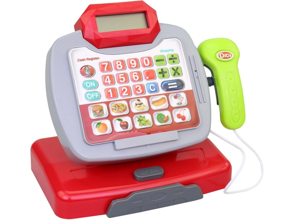 Questa cassa giocattolo realistica è un ottimo complemento per il gioco del negozio. Grazie agli effetti luminosi e sonori e allo scanner funzionante, stimola l’immaginazione dei bambini a un livello superiore. La calcolatrice digitale integrata facilita le addizioni e il controllo degli acquisti.