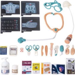 Nella confezione trovi 26 pezzi tra cui stetoscopio, termometro con regolazione della temperatura, siringa, bisturi, pinzetta, forbici, martelletto neurologico, specchietto e altri accessori. I pratici scomparti e sportellini offrono un’organizzazione ordinata di tutti gli strumenti, sempre a portata di mano. Materiali resistenti e sicuri, adatti ai bambini dai 3 anni.