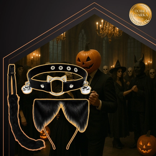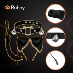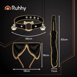 - Set completo 3-in-1: coda, cerchietto con orecchie, choker con campanellini
