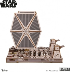 Gli appassionati apprezzeranno il cruscotto della cabina dettaglio, i cannoni laser mobili e il compensato colorato che dona un aspetto realistico. Il montaggio avviene senza colla né attrezzi e la difficoltá media garantisce un progetto divertente per i costruttori più esperti. Il modello è compatibile con l’X‑Wing di Luke Skywalker di Ugears: le basi possono essere collegate per creare una scena avvincente della Morte Nera.