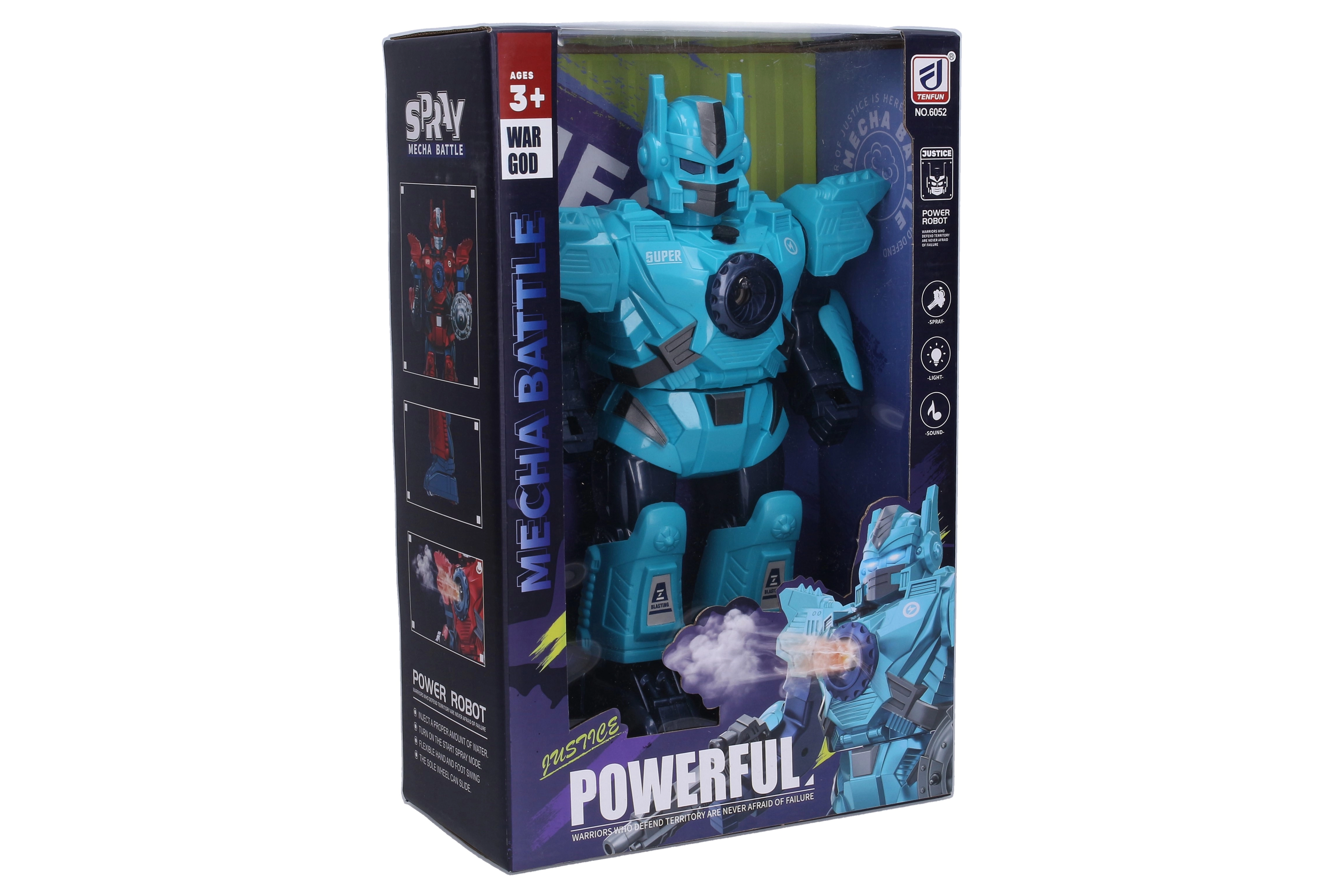 Questo robot MECHA, curato nei dettagli, offre un'esperienza di gioco spettacolare grazie alla combinazione di vapore, luci e suoni. Il serbatoio dell'acqua è posizionato nella parte superiore del torace, così la preparazione all'azione è rapida e semplice. La struttura robusta e il vistoso colore blu lo rendono una presenza inconfondibile in ogni missione.