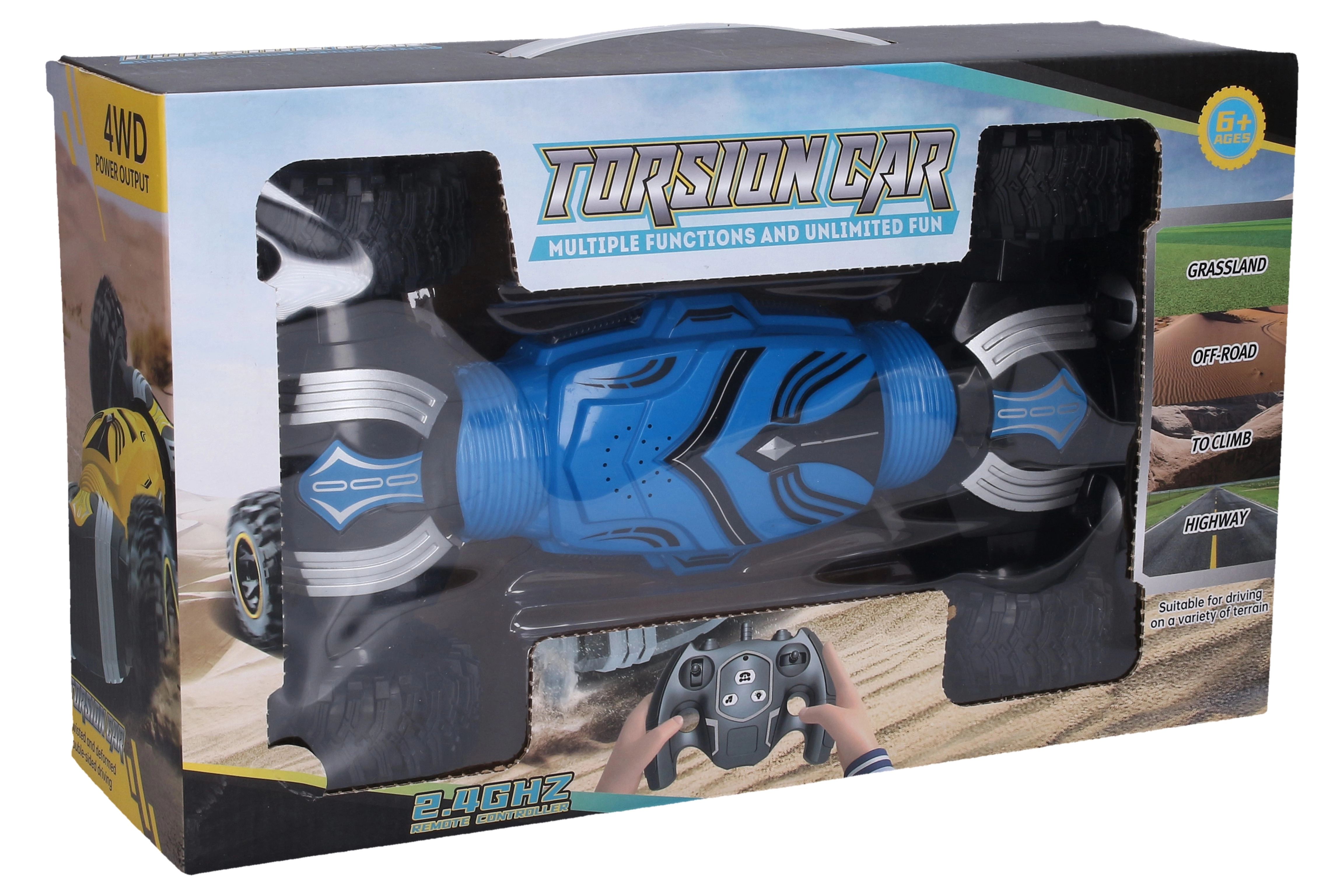 Goditi una guida ricca di azione con l’auto RC Torsion Car lunga 31 cm. Grazie al pulsante di deformazione sul controller passi alla modalità per trick e ostacoli, mentre effetti luminosi e sonori esaltano l’atmosfera di ogni corsa. La stabile frequenza 2.4 GHz garantisce un controllo fluido senza interferenze.