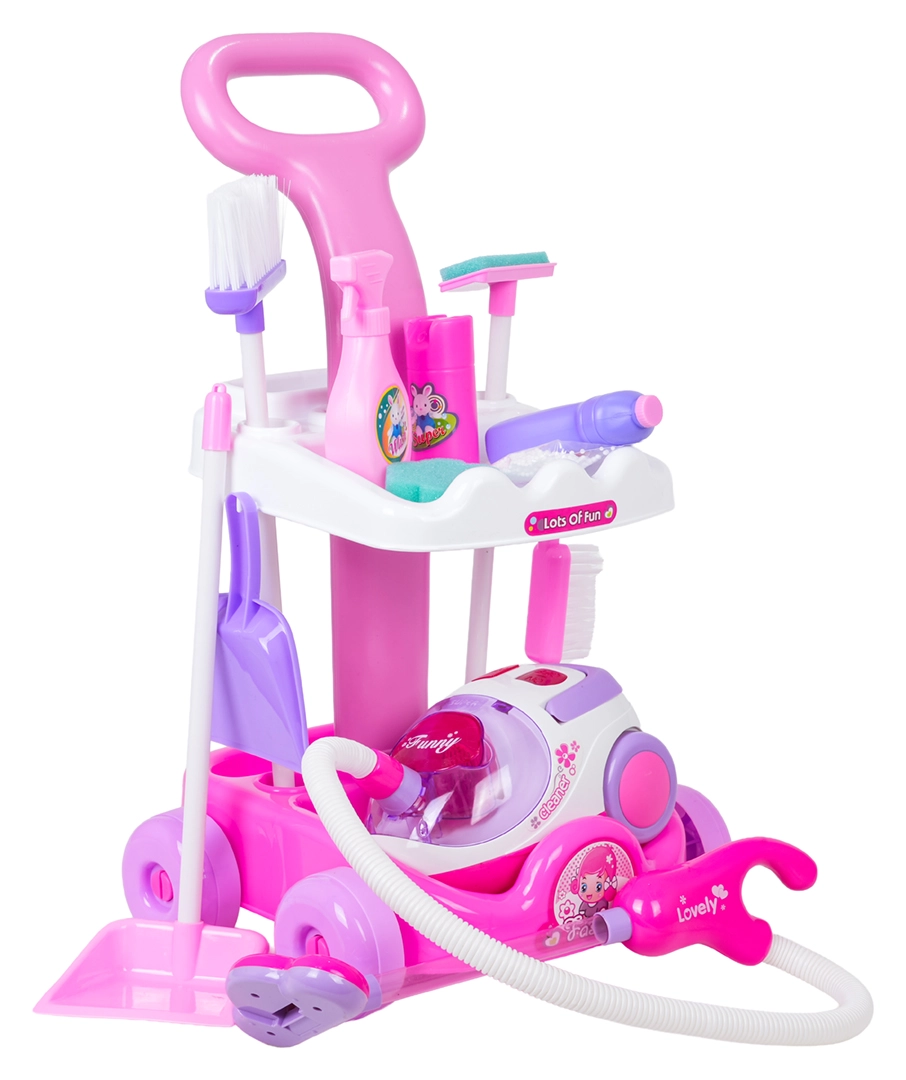 Stimola la fantasia dei bambini e le routine quotidiane con il carrellino rosa per le pulizie, che offre tutto ciò di cui i piccoli aiutanti hanno bisogno. Il carrellino stabile con ruote contiene tutti gli accessori per le pulizie, mentre l’aspirapolvere interattivo con luce e suoni rende il gioco più autentico. La plastica di qualità e sicura, dai colori vivaci, è ideale per bambini dai 3 anni in su.