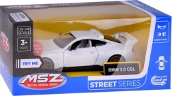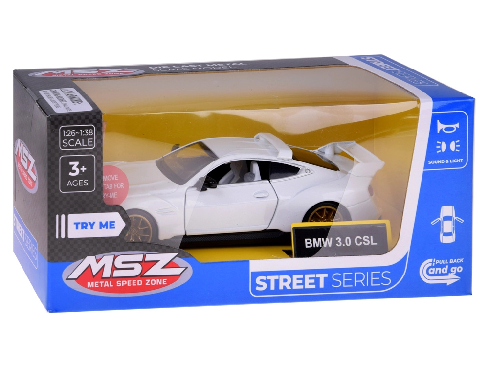 Compatto ma rifinito con precisione, il modello BMW 3.0 CSL entusiasma bambini e appassionati dell’estetica automobilistica classica. La carrozzeria in metallo, le linee sportive e gli elementi tipici BMW enfatizzano l’aspetto autentico. All’apertura delle porte si attivano le luci anteriori e posteriori e si sentono i suoni realistici del motore e di marcia, rendendo il gioco ancora più coinvolgente.