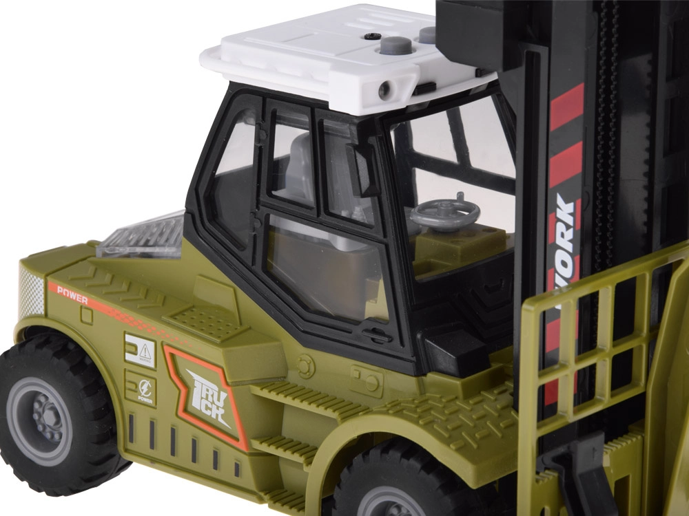 Questo carrello elevatore per bambini unisce un look professionale e accattivante a funzioni studiate che avvicinano al mondo della vera logistica di magazzino. Con due pulsanti sul tetto attivi 4 suoni realistici (avviamento motore, retromarcia, sollevamento del carico, clacson), accompagnati da luce bianca lampeggiante per un’autenticità di gioco ancora maggiore.