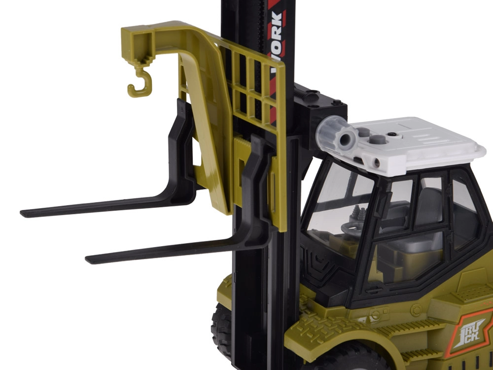 Le forche si possono allargare e stringere manualmente in base al tipo di “carico” e il loro sollevamento avviene tramite una comoda rotella. Apprezzerai anche il bauletto trasparente apribile per i piccoli oggetti e le rotelle in gomma, che scorrono fluide e non graffiano il pavimento. La struttura resistente e l’abitacolo dettagliato favoriscono un gioco creativo, sicuro e duraturo.