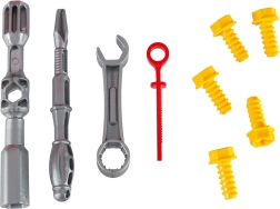 La confezione include un ricco set di pezzi e strumenti: 31 viti e bulloni, chiave in due pezzi e cacciavite, chiave piatta/a forchetta, ruote con cerchi, volante, cofano con motore e adesivi per la personalizzazione. I bambini allenano così motricità fine, pazienza e pensiero logico divertendosi.