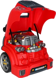 Questo set educativo coinvolge i bambini nel mondo delle auto: dallo smontaggio delle parti del motore alla simulazione di guida fino agli interventi “di officina” sotto il cofano. Il tutto è arricchito da effetti luminosi e sonori del motore e del clacson, pulsante di avviamento, luce di emergenza e leva del cambio. La robusta struttura in plastica e la funzione spingibile aiutano inoltre nell’apprendimento della camminata e nello sviluppo dell’equilibrio.