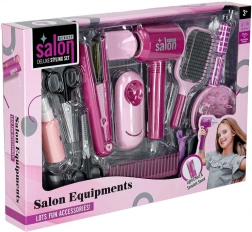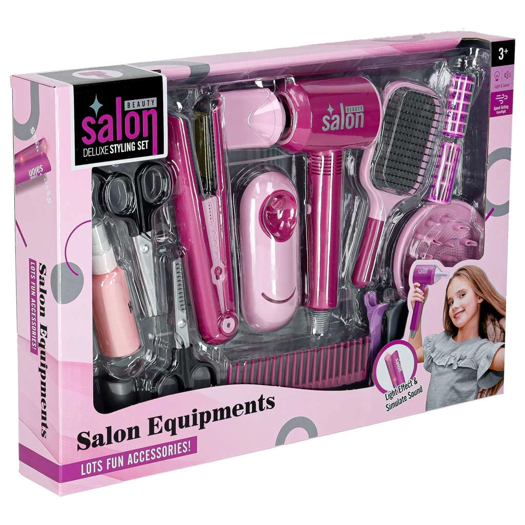 Apri un piccolo salone di bellezza a casa! Questo set da parrucchiere per bambini include un phon interattivo con beccucci intercambiabili e una piastra per capelli luminosa senza calore, sicure forbici senza lame affilate, spazzola, pettine, bigodini, clip e boccetta per il “gel”. Ideale per il gioco creativo e per sviluppare la fantasia dei bambini dai 3 anni.