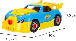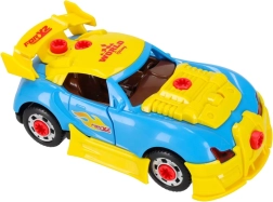 Il modello è 2 in 1 – i bambini possono scegliere tra cabrio e speciale da corsa. I pezzi in plastica sono leggeri, resistenti e adatti a un facile avvitamento con grandi viti in plastica. Il set supporta lo sviluppo di creatività, pensiero tecnico e coordinazione occhio–mano.