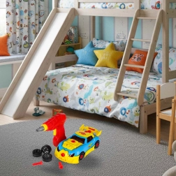 L’avvitatore a batteria per bambini e le grandi viti in plastica consentono montaggi e smontaggi ripetuti. Ideale per sviluppare motricità fine e pazienza.