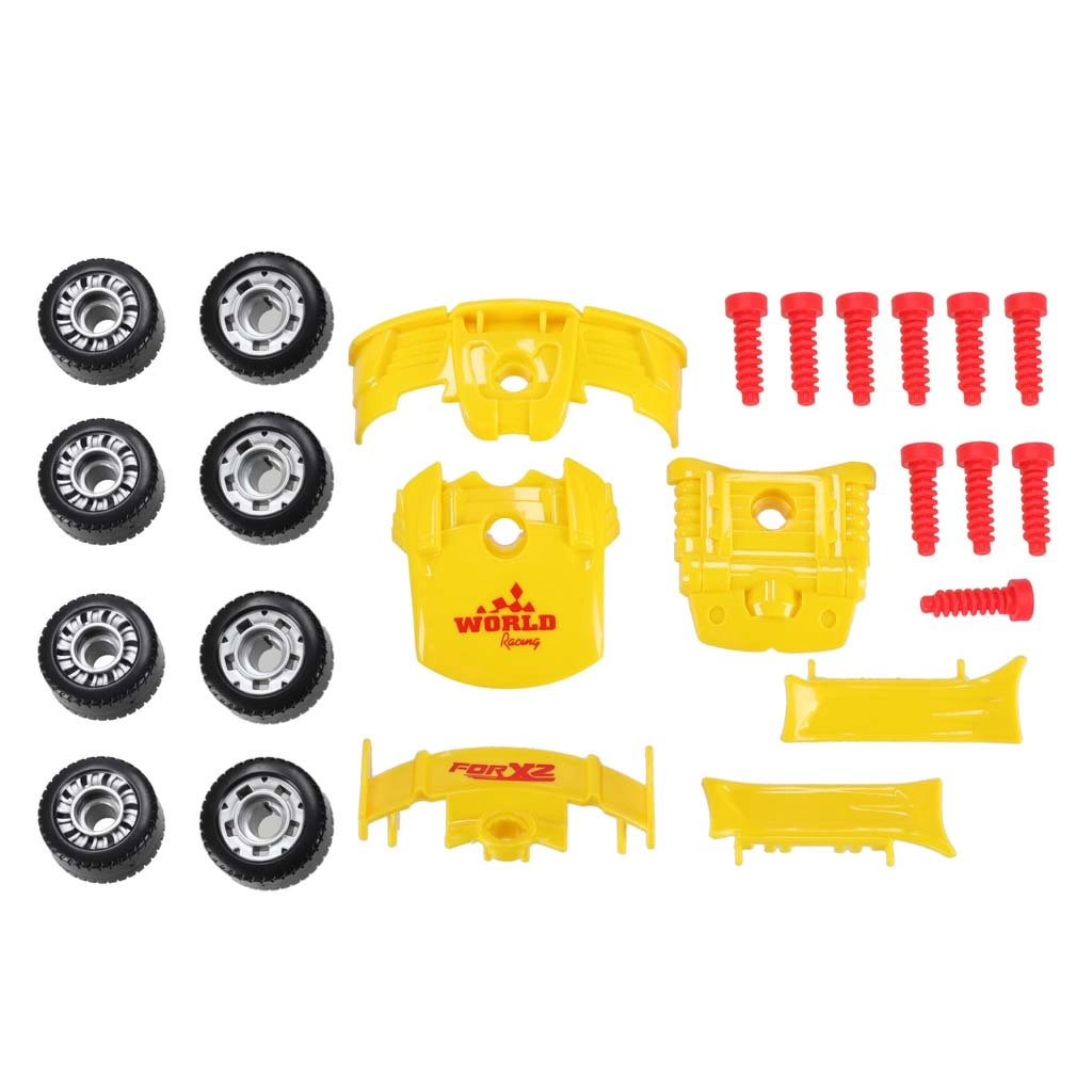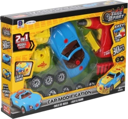 Dalla carrozzeria si creano facilmente due versioni diverse dell’auto. I bambini possono provare il tuning e sostituire ruote e pannelli secondo la propria fantasia.