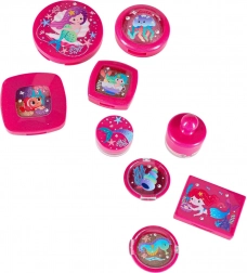 Stimola la fantasia con il set completo da 22 pezzi per trucco e unghie in un’elegante valigetta. Ideale per giocare al parrucchiere o al salone di bellezza – in modo sicuro, pulito e con tanti accessori. All’interno trovi, ad esempio, ombretti in schiuma, fard, cipria, pennelli e accessori per la manicure.