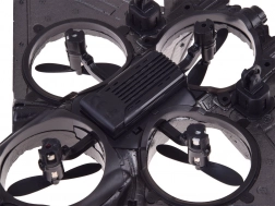 Quattro eliche a ventola in anelli di protezione aumentano sicurezza e stabilità. Adatto al volo in spazi più ridotti.