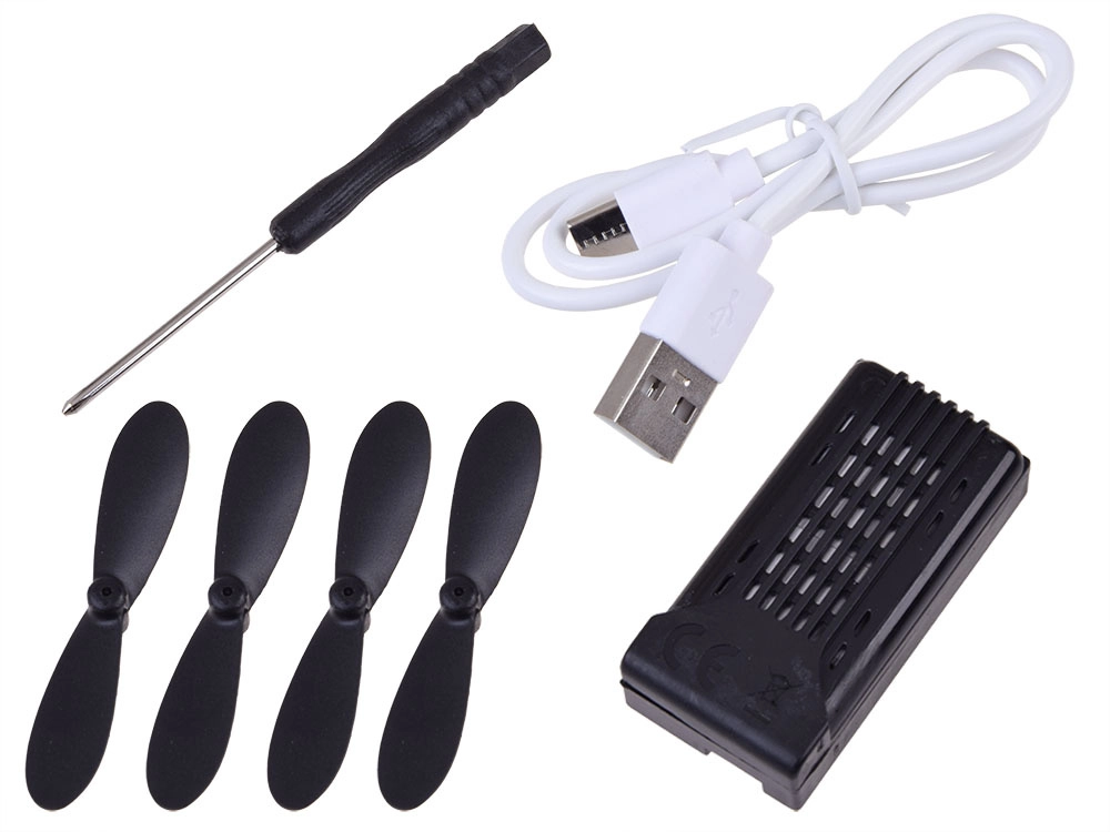 Il radiocomando a 2,4 GHz garantisce accoppiamento automatico, calibrazione semplice e controllo confortevole. Non mancano arresto di emergenza, modalità headless, hovering e luci LED per un migliore orientamento. Ricarica tramite cavo USB, volo di alcuni minuti per carica, ricarica di circa 60 minuti.