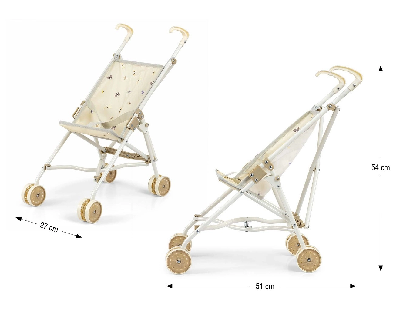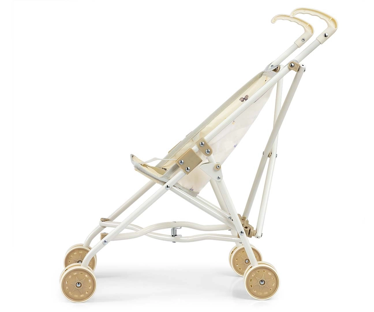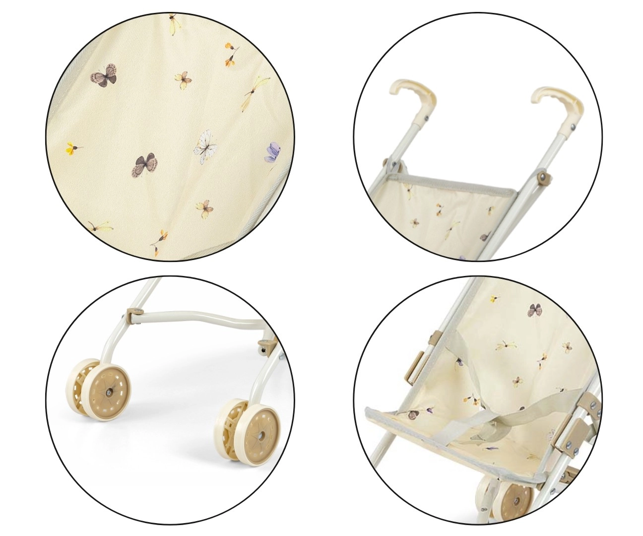 Grazie alla rapida chiusura a ombrello, il passeggino si ripone facilmente in piano, occupando poco spazio a casa e in viaggio. Il telaio in metallo assicura solidità, le ruote doppie una marcia fluida e la cintura di sicurezza mantiene la bambola ben ferma.