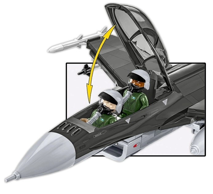 Inclusa una coppia di minifigure in tuta da volo con caschi e maschere d’ossigeno, missili AIM-120 AMRAAM e AIM-9 Sidewinder finemente realizzati e un supporto stabile con nome del modello e scala. Le istruzioni chiare, passo dopo passo, piaceranno sia ai giovani costruttori sia ai modellisti esperti.