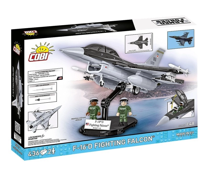 F-16D Fighting Falcon è un’icona dell’aviazione moderna: un velivolo biposto multiruolo per addestramento e impieghi operativi. Questo set di costruzione dettagliato in scala 1:48 riproduce fedelmente le linee aerodinamiche, l’abitacolo, i carichi alari e l’armamento. Grazie alla licenza ufficiale LOCKHEED MARTIN si distingue per l’accuratezza e per le stampe realistiche direttamente sui pezzi.