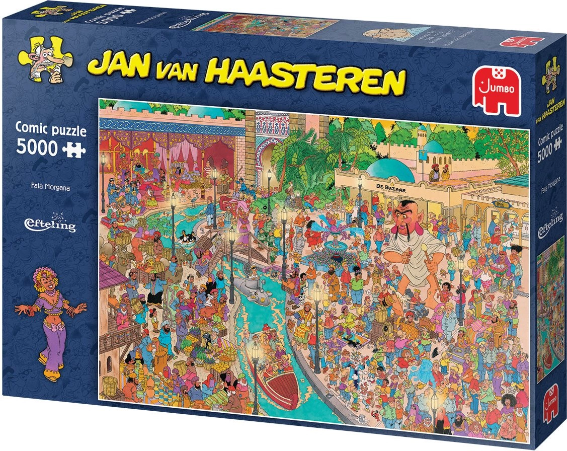 Scopri un mondo pieno di umorismo e dettagli con i leggendari puzzle di JAN VAN HAASTEREN. Il puzzle di grande formato da 5000 pezzi presenta la scena Fata Morgana a Efteling, ricca di gag, personaggi e elementi iconici come la pinna di squalo e le mani fuori posto. L’eccellente qualità JUMBO garantisce pezzi precisi e ore di divertimento.