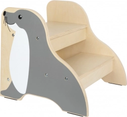 Stabile scaletta per bambini con il simpatico motivo della foca del brand small foot, aiuta i piccoli a raggiungere in sicurezza le superfici rialzate in bagno, in cucina e nella cameretta. Grazie alla solida struttura con portata fino a 150 kg è adatta anche agli adulti; le gomme antiscivolo sul lato inferiore garantiscono stabilità su superfici lisce e il design naturale si integra perfettamente in ogni interno.