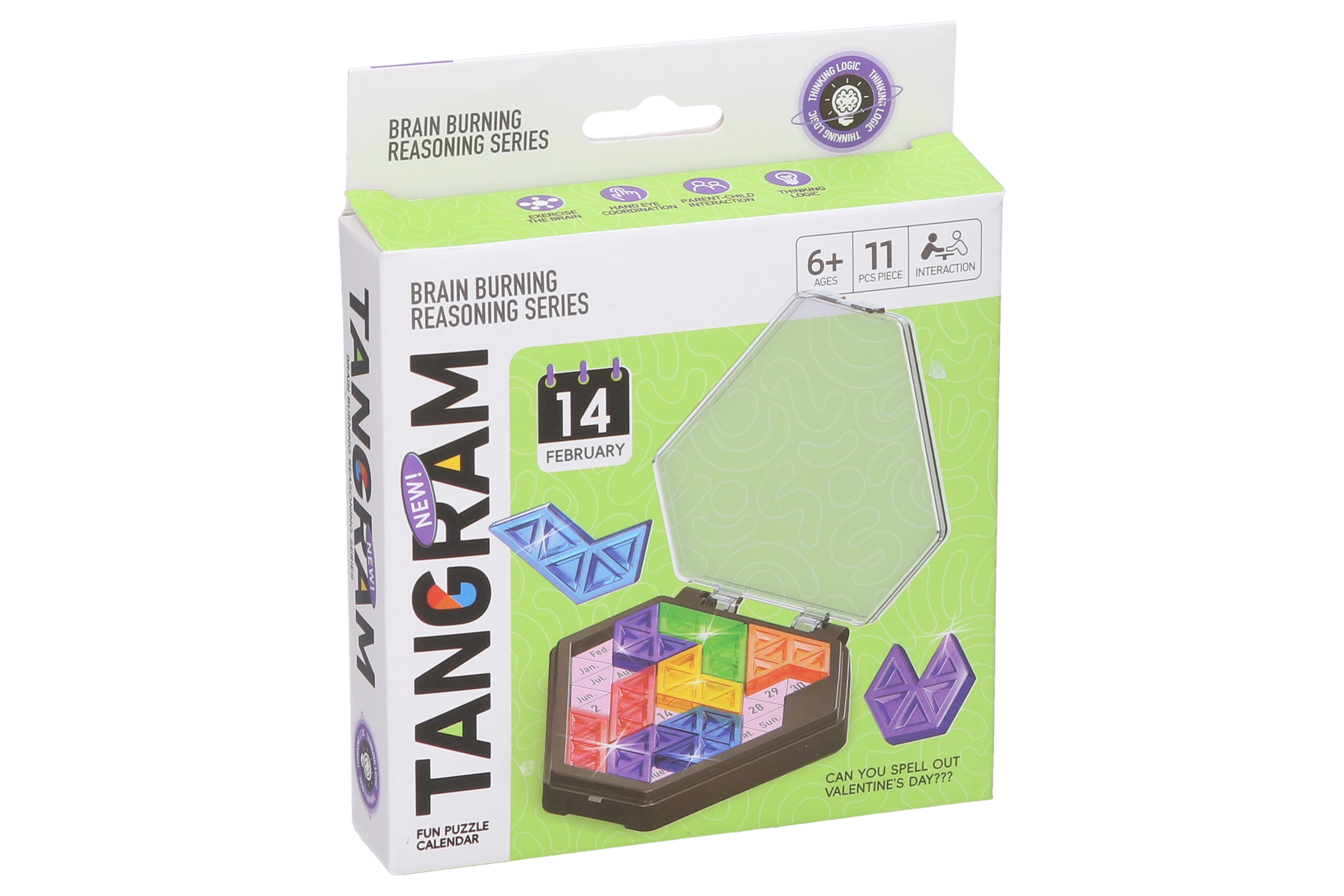 Scopri un modo intelligente e divertente per allenare logica e immaginazione con questo rompicapo tangram dal diametro di 10 cm. Include schede modello per comporre varie figure e anche date specifiche (Festa della mamma, San Valentino, ecc.), con l’obiettivo di disporre i pezzi in modo che siano visibili solo una certa data e il giorno della settimana. Disponibile in 2 varianti – nero e bianco.