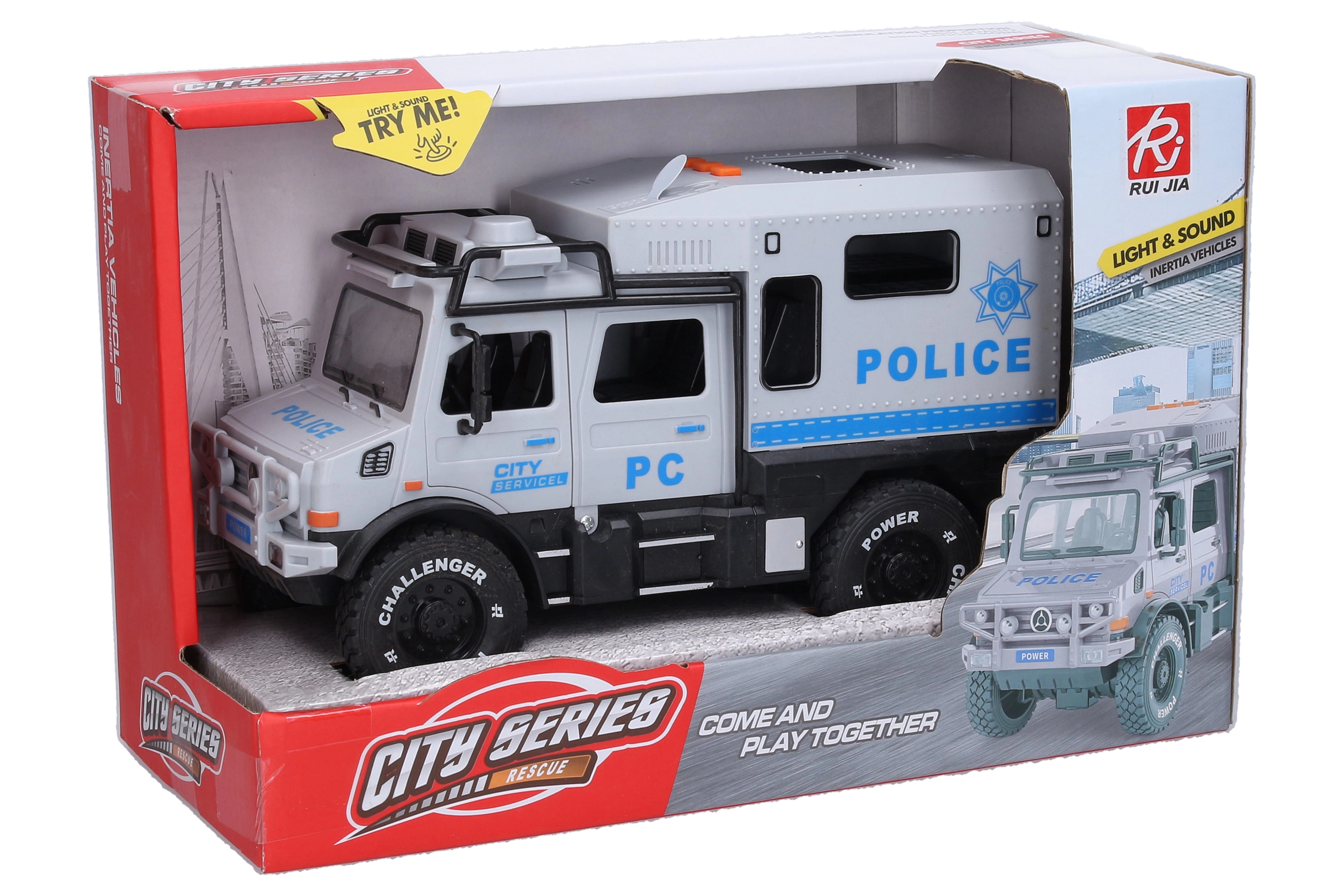 Parti per un intervento con l’auto blindata della polizia, che colpisce per la lavorazione dettagliata e le numerose funzioni. Grazie alla trazione a frizione il veicolo parte dopo una spinta e, grazie agli effetti, i bambini vivranno un gioco ancora più realistico.