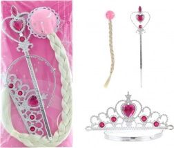 Set di bellezza per bambini con treccia bionda, corona e scettro