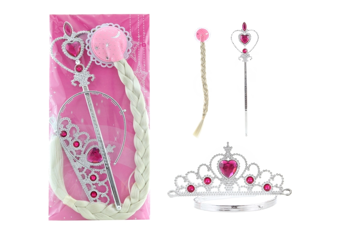 Incanta le piccole principesse con questo set di bellezza per bambini, che include una corona, uno scettro e una treccia bionda. Ideale per giocare alle principesse, travestimenti in casa e spettacoli per bambini. Set leggero e sicuro per bambini dai 3 anni.