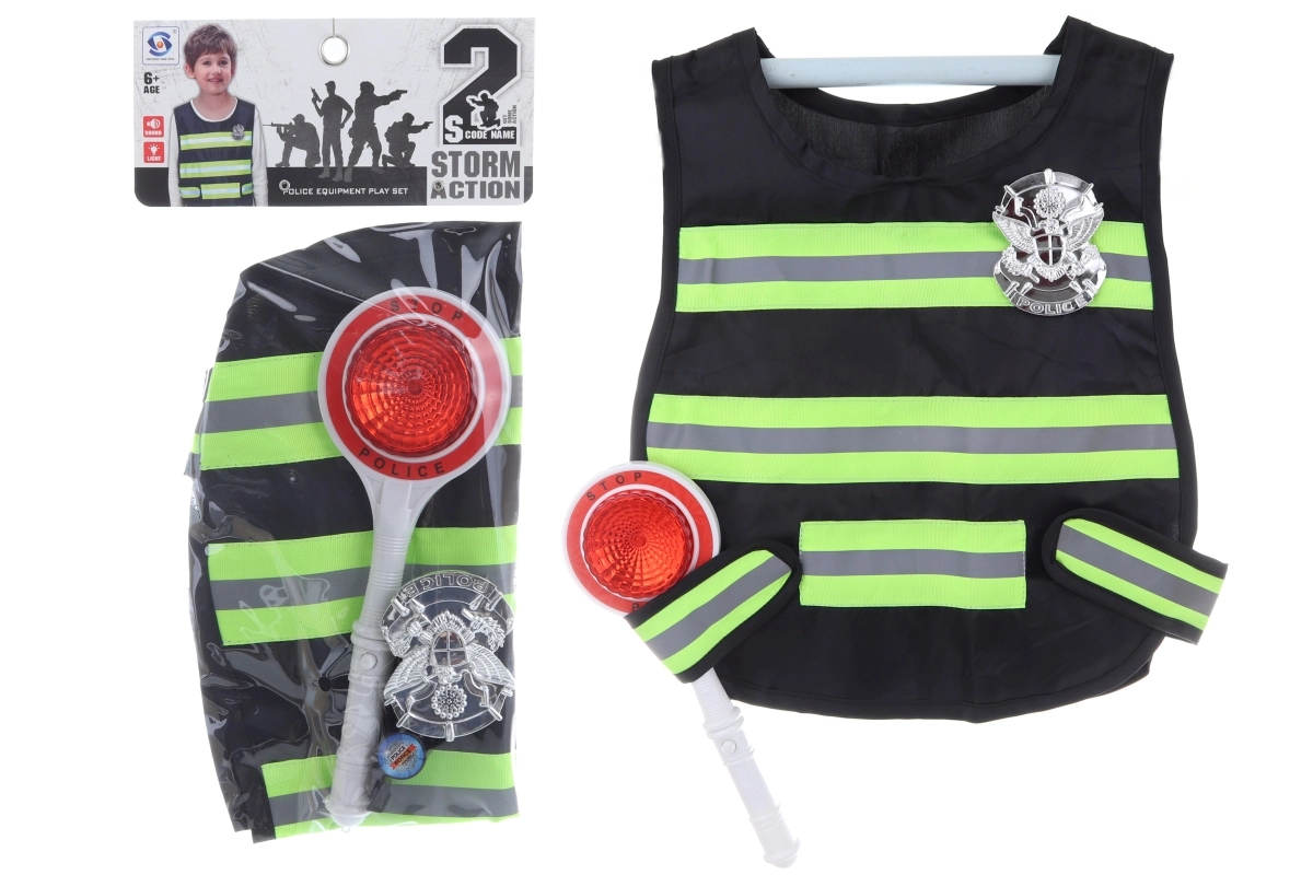 Diventa un piccolo tutore dell’ordine con questo set di polizia completo! La confezione include un gilet da poliziotto, un distintivo e una paletta luminosa a batterie. Ideale per giochi di ruolo da poliziotto, stimola la fantasia e il role play. L’alimentazione è garantita da 3× batterie AG13 (incluse).