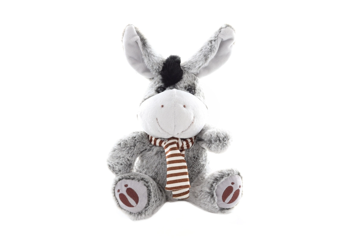 Dolcissimo asinello di peluche alto 28 cm, il primo compagno perfetto per i più piccoli. Morbido, soffice e sicuro già dai 0+. Un regalo ideale per neonati e bimbi in età prescolare, favorisce coccole, tranquillità e lo sviluppo della motricità fine.