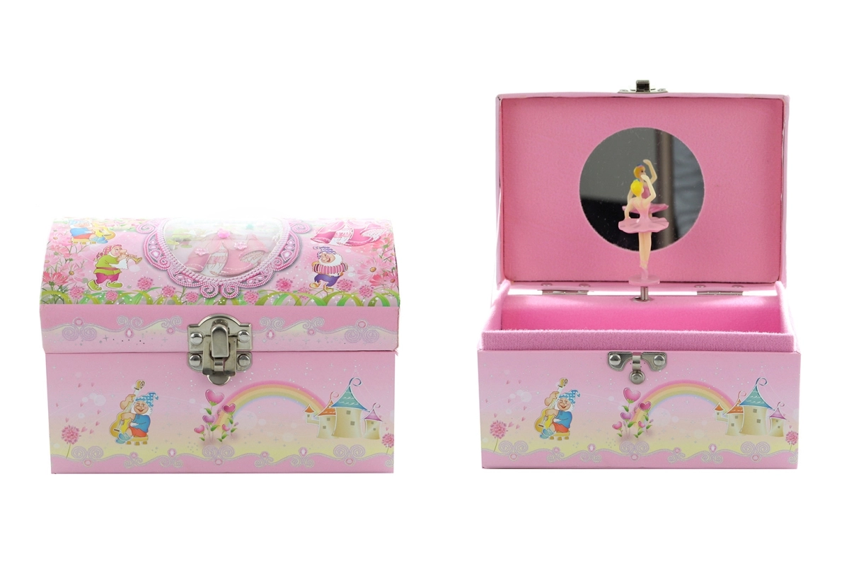 Elegante scatola portagioie musicale a forma di scrigno per riporre i gioielli con stile. Dopo aver caricato la chiave, all'interno la ballerina inizia a girare e parte la melodia. All'interno trovi uno specchietto pratico e spazio per piccoli oggetti. Design romantico, ballerina danzante e meccanismo musicale che delizieranno ogni amante dei bei accessori.