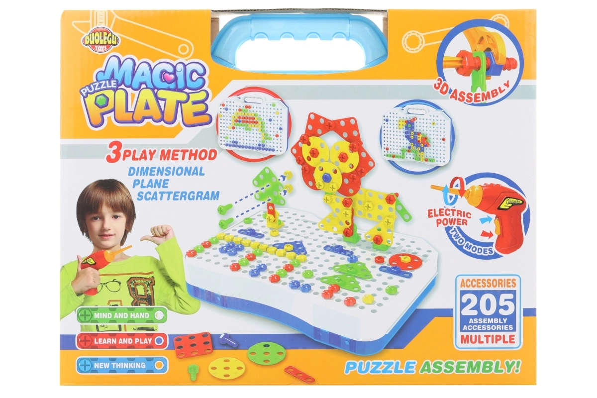 Divertente e creativo kit di costruzione avvitabile con trapano giocattolo funzionante in pratica valigetta, perfetto per piccoli costruttori dai 3 anni. La confezione include 205 pezzi, utensili e istruzioni, così i bambini possono sviluppare motricità fine, pensiero logico e creatività costruendo infiniti modelli.