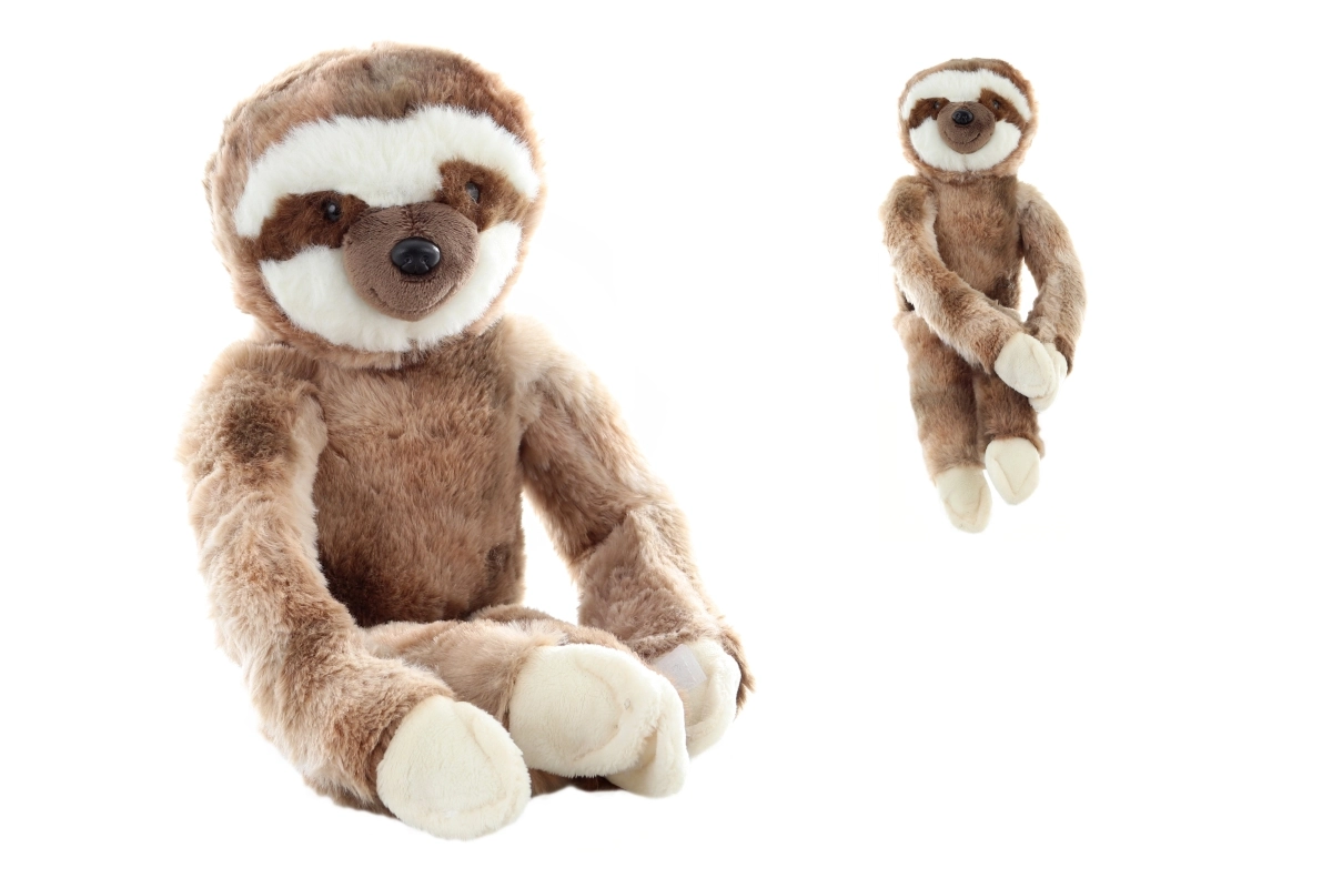Questo soffice bradipo di peluche è il compagno ideale per coccole e gioco. Grazie alla superficie morbida e piacevole è sicuro anche per i più piccoli, mentre le chiusure a strappo sugli arti permettono un fissaggio creativo e pose divertenti.
