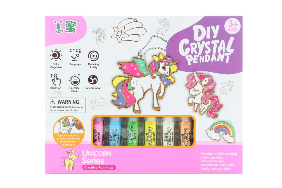 Scopri un divertente set creativo per bambini con cui realizzare facilmente ciondoli a tema unicorno. La confezione include tutto il necessario – 6 ciondoli da decorare, 6 colori, glitter, pinzetta e cordini. Ideale per sviluppare creatività e motricità fine, adatto ai bambini da 3 anni.