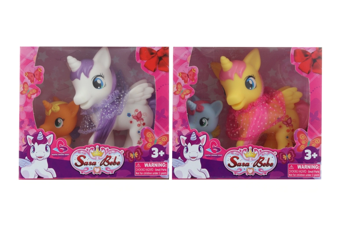 Un tenero set di due unicorni farà felici tutti i piccoli amanti delle fiabe. Include un unicorno grande e uno piccolo in plastica resistente, ideale per il gioco creativo e lo sviluppo della fantasia. La confezione compatta e le due varianti di colore (in base alla disponibilità in magazzino) lo rendono un regalo perfetto per bambini dai 3 anni.